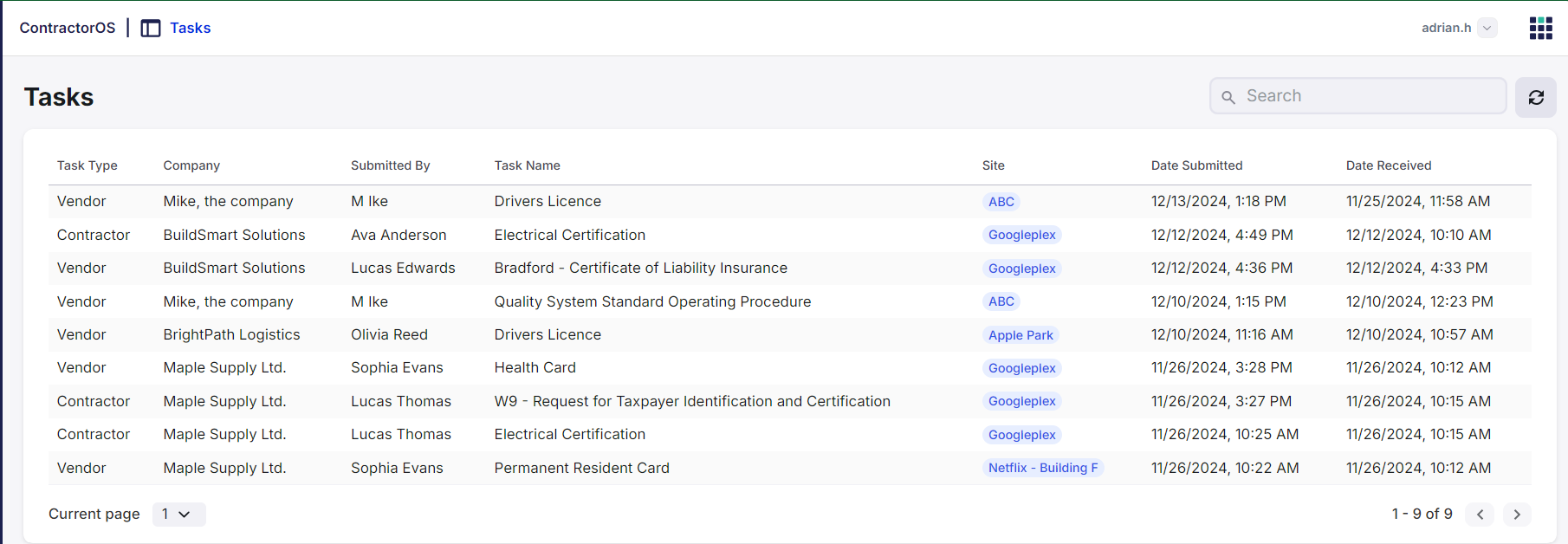 Once your site is registered and you have set up your Vendors and Contractors, the next step is for Vendors and Contractors to complete their assigned Tasks by uploading the documents you have required in order to comply with access requirements for your site.