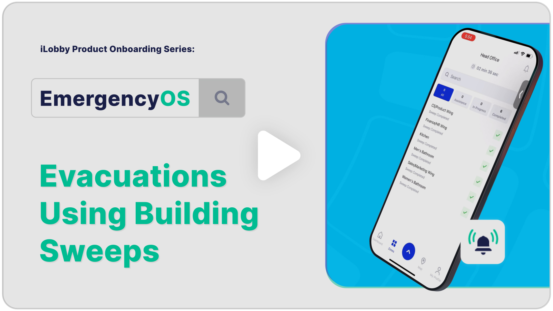 Antes de realizar su primera evacuación con inspección del edificio, esta función debe estar habilitada a través del portal iLobby, consulte Inspecciones del edificio: Establecimiento de zonas del edificio para una guía detallada paso a paso de este proceso. Una vez que la función de inspección del edificio esté habilitada, estará listo para realizar su primera evacuación. Nota: Las evacuaciones con inspección del edificio solo se pueden realizar a través de la aplicación móvil iLobby companion.